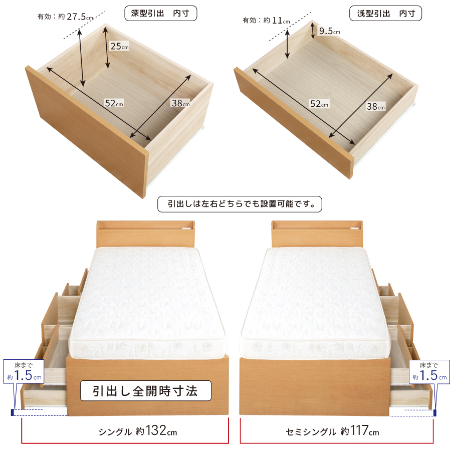 本体サイズ幅83×長さ190(床面長181)×高さ80cm(床面高さ41cm) 総重量約60kg 【引出(大)内寸】幅52×奥行38.5×深さ25.5cm 【引出(小)内寸】幅52×奥行38.5×深さ10.5cm 【収納スペース内寸】幅28×長さ178×深さ34cm 【カウンター棚スペース内寸】約幅94×奥行7cm