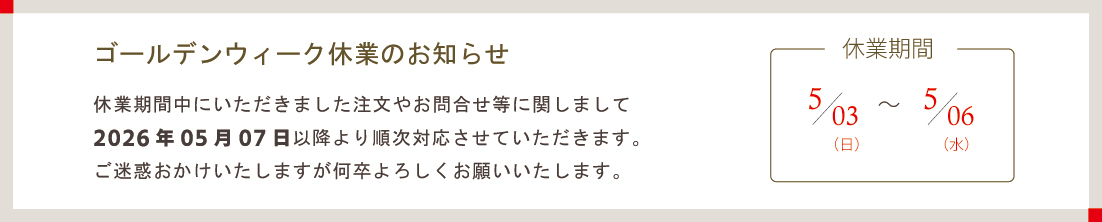 ※弊社休業日の場合、注文・問い合わせへの返信は次営業日以降となります。